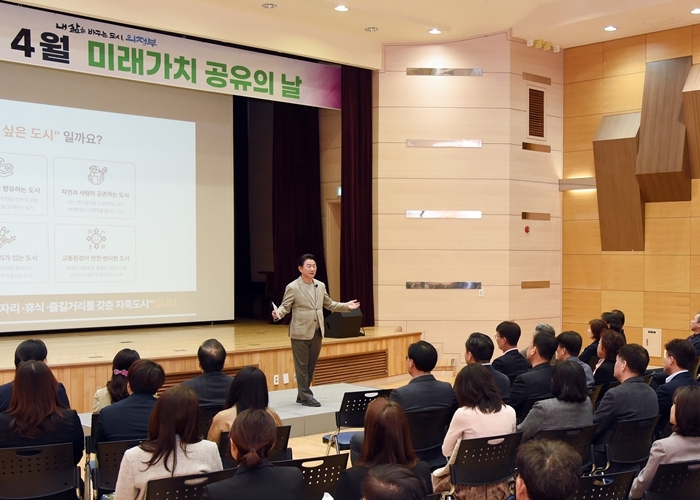 월례행사로 진행하는 미래가치 공유의 날은 시장과 직원이 시의 발전적 비전과 우수사례에 대해 소개하며, 중점적으로 추구해 나갈 미래가치에 대해 공유하는 자리다.