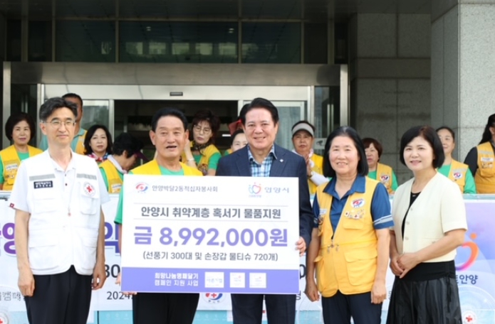 [뉴스서울] 대한적십자사 박달2동 봉사회는 12일 안양시 저소득 취약계층의 건강한 여름나기를 지원하고자 선풍기 300대 및 손장갑 물티슈(워시 글러브) 720개(총 8,992천 원 상당)를 기탁했다.