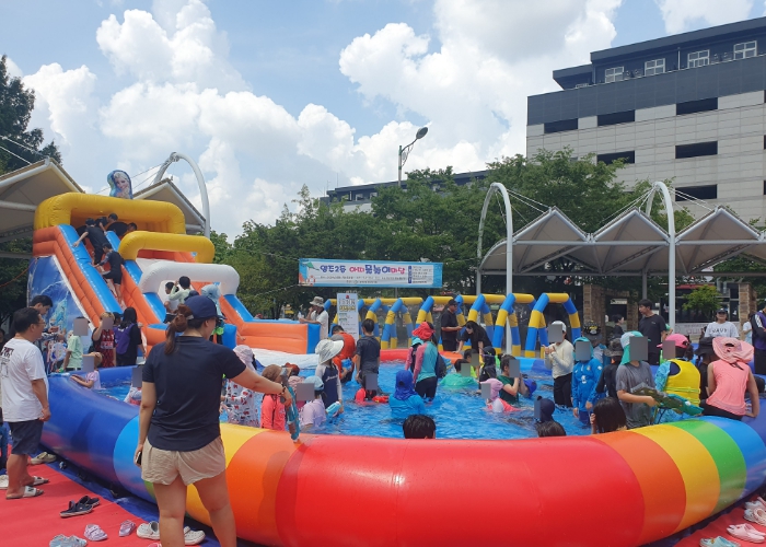 이날 방문객들은 하늘물공원 내 설치된 물놀이장에서 물장구를 치는 것은 물론 워터슬라이드를 타고 물총놀이를 즐기며 무더위를 쫓았다.