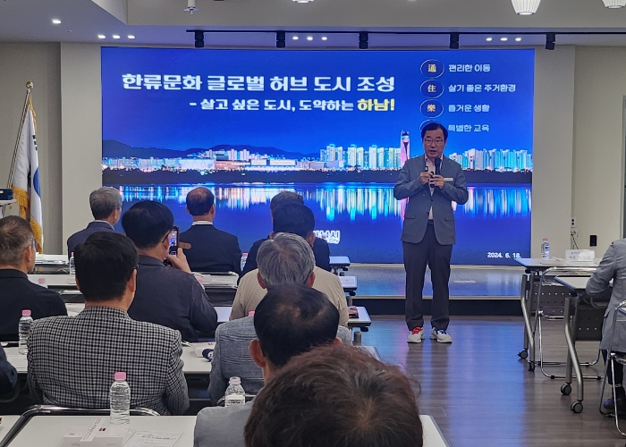 [뉴스서울] 이현재 하남시장이 지난 18일 ㈔하남시기업인협의회가 주관하는 조찬 포럼에서 하남시의 K-컬처 허브도시 조성 비전에 발맞춘 기업의 미래 전략 방안을 제안해 박수갈채를 받았다.