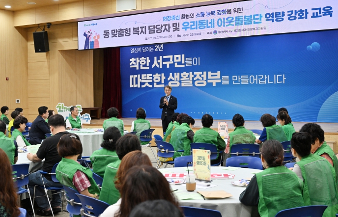 [뉴스서울] 광주광역시 서구는 19일 서구청 들불홀에서 우리동네 이웃돌봄단 82명과 동 맞춤형복지 담당 공무원 20여 명을 대상으로 소통능력 강화를 위한 역량강화 교육을 진행했다.