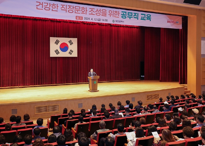 [뉴스서울] 대전시는 12일 오후 2시 시청 대강당에서 공무직 등 근로자 500여 명을 대상으로 시정 핵심 가치 소통 및 직장 내 성희롱·괴롭힘 예방 교육을 실시했다.