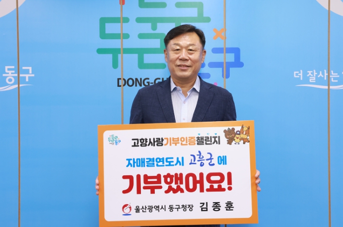 [뉴스서울] 김종훈 동구청장이 8월 12일 지역사회 기부문화 촉진과 고향사랑기부제 활성화를 위한 ‘고향사랑 기부 인증 챌린지’에 동참했다.