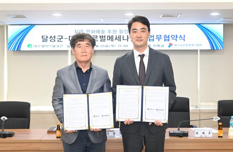 ▲ 달성군, 대구글로벌메세나협회 문화예술 후원 확산 위한 업무협약 |