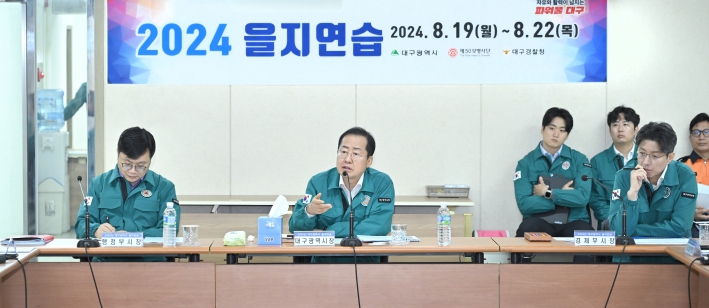 [뉴스서울] 8월 19일 오전 9시, 홍준표 대구광역시장의 주재로 2024년 을지연습 최초 상황보고회를 대구광역시 을지연습 연습장에서 개최해 을지연습 상황조성 전문 보고 및 시(市)와 군(軍), 경찰 등 각 기관의 북한 핵 대응방안에 대해 점검했다.
