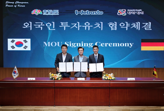 이날 투자 협약식은 오성환 당진시장과 김태흠 충청남도지사 및 최용두 베바스토 운영총괄 이사를 비롯한 기업 관계자가 참석했으며, 당진시가 미래형 자동차 산업의 메카로 발돋움하기 위해 뜻을 모았다.