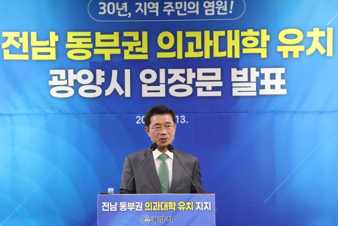 정인화 광양시장은 “지역 주민의 건강권과 생명권을 지킨다는 역사적 사명감을 가지고 15만 광양시민과 함께 전남 동부권 의과대학 유치에 최선의 노력을 다하겠다”고 밝혔다.