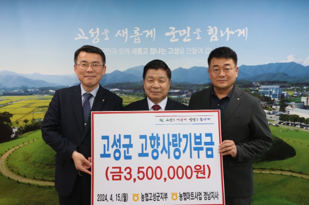김진영 지사장은 “하나로마트사업 경남지부 직원들의 따뜻한 마음을 모아왔다”라며 “기부금이 고성군민의 복리증진에 도움이 되기를 바라며, 고향사랑기부제 동참으로 고성경제 활성화의 마중물이 되기를 기대한다”라고 말했다.