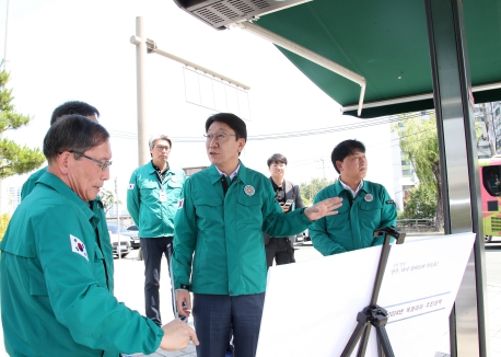 먼저 우 시장은 스마트그늘막이 설치된 고속버스터미널 일대를 찾아 전주지역 폭염저감시설 설치 현황을 점검했다.