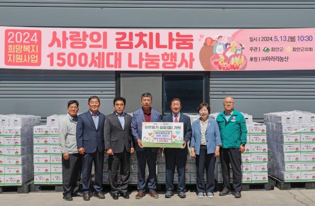 군북면 유현리 공장에서 열린 이날 기탁식에는 조근제 함안군수와 ㈜아라리농산 강종주 대표 외 관계자들이 참석했으며, 기탁된 물품은 관내 저소득계층 1500세대에 전달될 예정이다