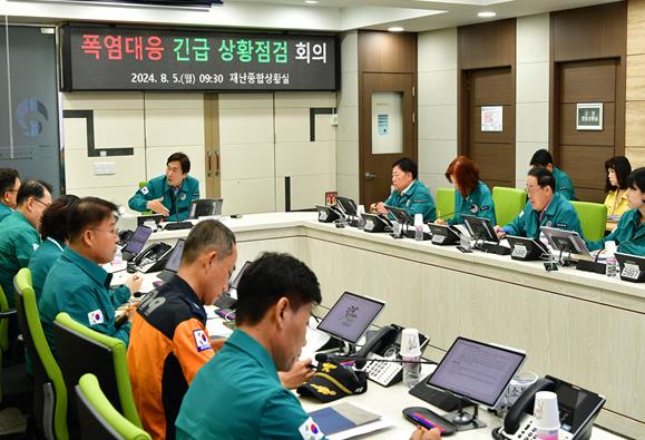 또한 관계기관 간 유기적인 협력을 위해 경산소방서 구급팀장과 본청 국·소·본부장, 폭염대응 관련 부서장 등 30여 명이 참석하여 기상상황·전망 보고와 함께 부서별 주요 대응상황을 점검했다.