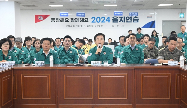 [뉴스서울] 진주시는 19일 시청 지하 1층에 마련된 을지연습장에서 ‘2024년 을지연습’의 시작을 알리는 최초상황보고회를 개최했다.
