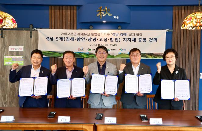 [뉴스서울] 유네스코 세계유산 가야고분군을 보유한 경남 5곳의 자치단체장들이 19일 가야고분군 세계유산 통합관리기구 김해 설치를 지지하는 공동건의문을 채택해 국가유산청에 전달하기로 했다.