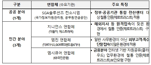 이에, 과기정통부도 국내 기업·기관들의 철통 인증(제로트러스트) 도입을 지원하기 위한 시범사업을 마련하고 4개 연합체를 선정하여 추진했다. 이번 사업을 통해 지난 6월부터 수요기관별 맞춤형 보안모형 개발부터 실제 환경에서의 시범 운영까지 지원하여 다양한 철통 인증(제로트러스트) 도입·구현 사례를 발굴했다.