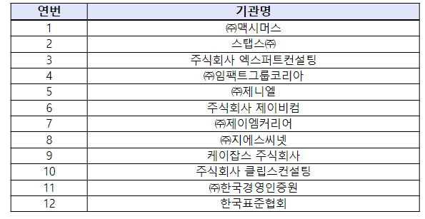 ▲ 2024년 재취업지원서비스 기업컨설팅 수행기관 |