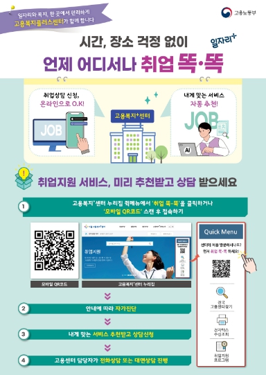 [뉴스서울] 고용노동부는 언제 어디서나 ‘취업 똑‧똑’ 온라인 서비스를 9월 24일부터 시작한다.