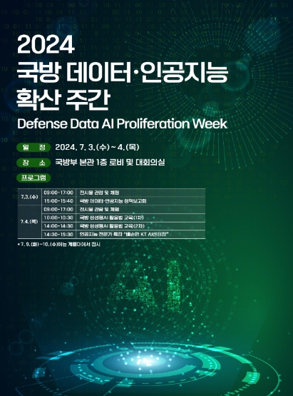 [뉴스서울] 국방부는 7월 3일부터 10일까지 '국방 데이터·인공지능 확산주간(Defense Data AI Proliferation Week)'을 시행하여 국방혁신 4.0의 핵심목표인 ’AI 과학기술 강군 육성‘을 위한 그동안의 노력을 되돌아보고, 국방 全 분야 인공지능 확산을 위한 대내외적 공감대를 형성하는 기회를 마련했다.