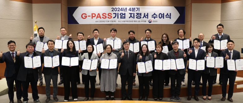 [뉴스서울] 조달청은 12일 서울지방조달청 PPS홀에서 ‘24년도 4분기 해외조달시장 진출유망기업(G-PASS기업) 신규 지정 기업에게 지정서 수여식과 함께 현장 간담회를 개최했다.