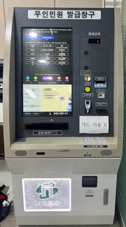▲ 서대문구가 최근 국민건강보험공단 서대문지사에 설치한 무인민원발급기 |