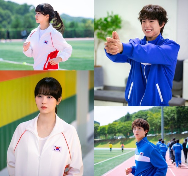 공개된 스틸컷 속에는 과거 국가대표 선수촌 트랙 위, 운동 중인 윤동주가 포착됐다. 그러나 그의 시선은 오롯이 한 방향으로 향해 있다. 반대편 트랙에서 달려오는 지한나를 발견한 순간, 자연스럽게 그녀를 향해 고개가 돌아간 것.