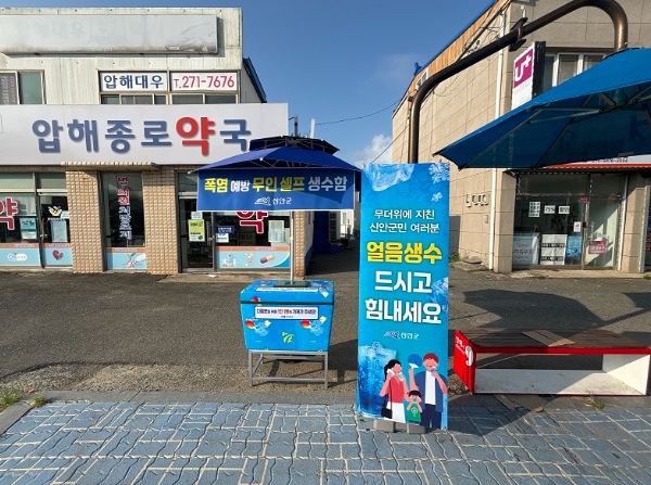 폭염 취약 시간대에 유동 인구가 많은 압해읍 시가지에 무인 생수함을 설치하여 주민들이 무더위 속에서도 손쉽게 수분을 보충하여, 온열질환을 예방할 수 있도록 지원하고 있다.