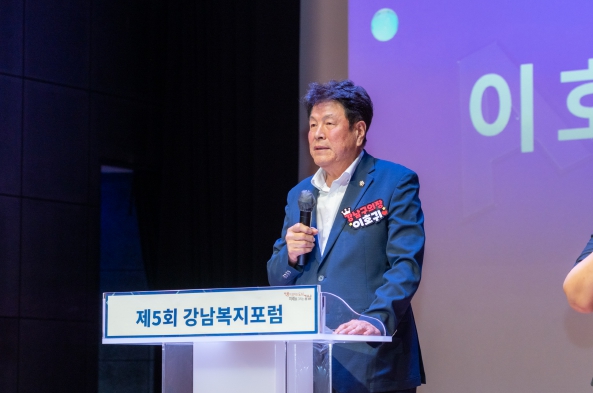 ▲ 지난 2일 열린 ‘제5회 강남복지포럼’에서 강남구의회 이호귀 의장이 축사를 하고 있다. |