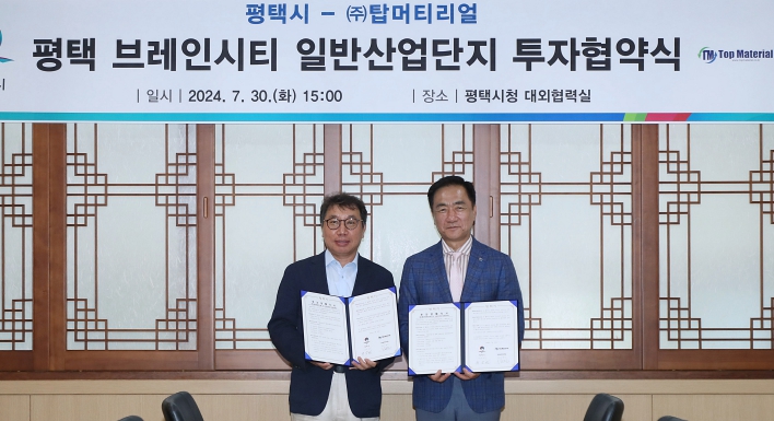 ▲ 평택시, ㈜탑머티리얼과 500억원 규모 투자협약 체결 |