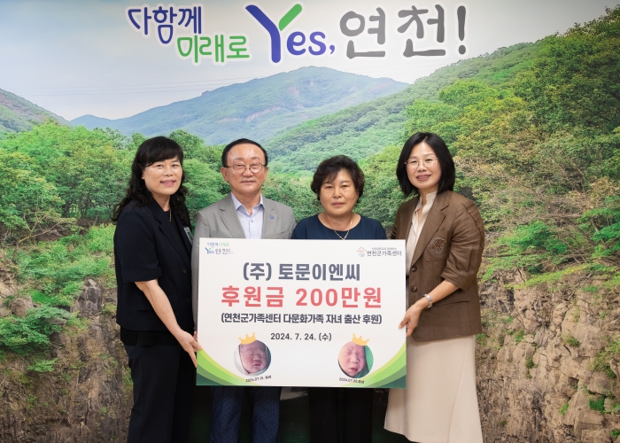 [뉴스서울] ㈜토문이엔씨는 24일 최근 출산한 다문화 가족을 지원하고자 200만원을 연천군가족센터에 기부했다.