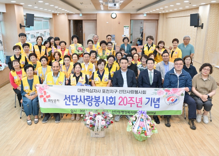 [뉴스서울] 포천시 선단동 행정복지센터는 지난 18일 선단동 행정복지센터에서 대한적십자사 선단사랑봉사회(회장 나삼옥)의 20주년 기념 행사가 열렸다고 전했다.