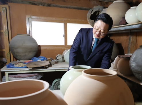 [뉴스서울] 이장우 대전시장은 12일 오전 故이종수 도예가 작업실을 방문, 유족들을 만나 미술관 건립에 대한 의견을 나누고, 고인의 작업 공간 및 작품들을 둘러봤다.