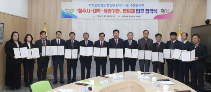 청주시와 관내 대학, 청년 일자리 유관기관은 협의체를 구성하고 ▲청년정책 공유 ▲청년 취·창업 관련 사업 지원 협조 ▲청년 지역 산업체 연계 취업 및 정착 지원 ▲지역 인재 양성을 위한 양질의 교육환경 조성 등에 협력하기로 했다.