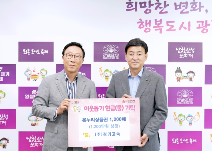 [뉴스서울] ㈜경기고속 권오성 전무이사는 4일 광주시를 방문해 추석을 맞아 어려운 이웃을 위해 사용해 달라며 온누리상품권 1천200매(1천200만원)를 기탁했다.