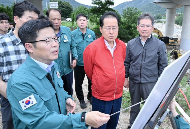 [뉴스서울] 홍준표 대구광역시장은 7월 17일 오후, 군위군 부계면 대율리 지방하천 수해 복구현장을 방문했다.