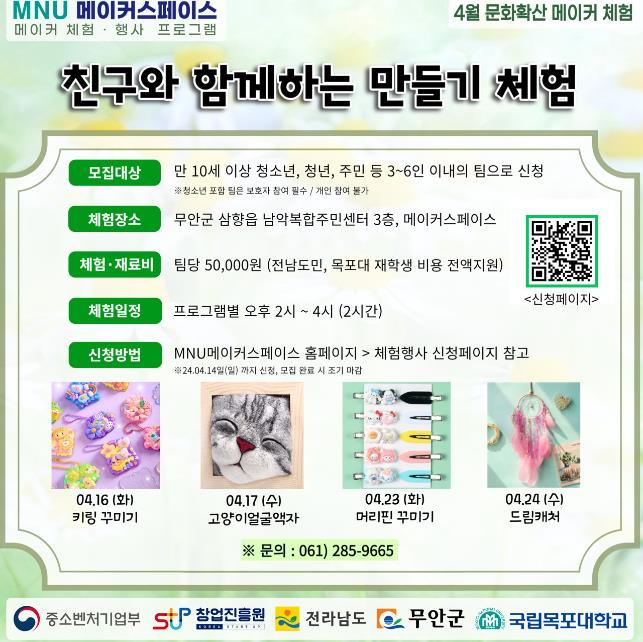 ▲ MNU 메이커스페이스, 4월 메이커 체험·행사 프로그램 참여자 모집 |