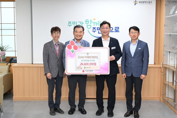 [뉴스서울] 대전 중구는 3일 대전사회복지공동모금회에서 추석명절 지원금 2,460만 원을 전달했다고 밝혔다.