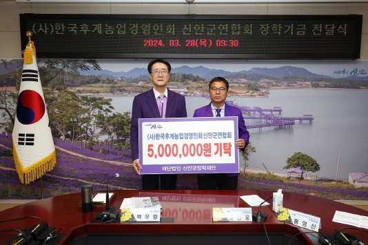 ▲ (사)한국후계농업경영인회 신안군연합회, 인재 육성 장학금 500만 원 기탁 |