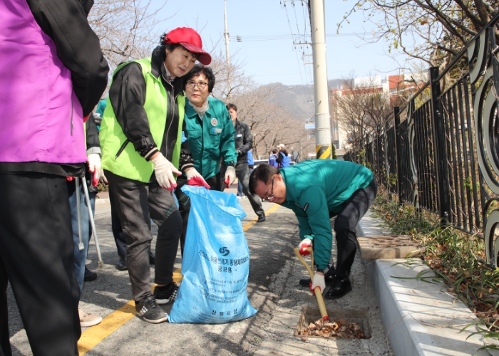 이번 봄맞이 대청소는 홍남표 시장을 비롯해 지역의 자생 단체, 공공근로, 환경실무원, 공무원 등 1,000여 명이 대거 참여해 명곡동, 올림픽공원, 오동동, 어시장, 양덕로, 봉양로 일원에서 빗물받이 정비를 중심으로 이루어졌다.