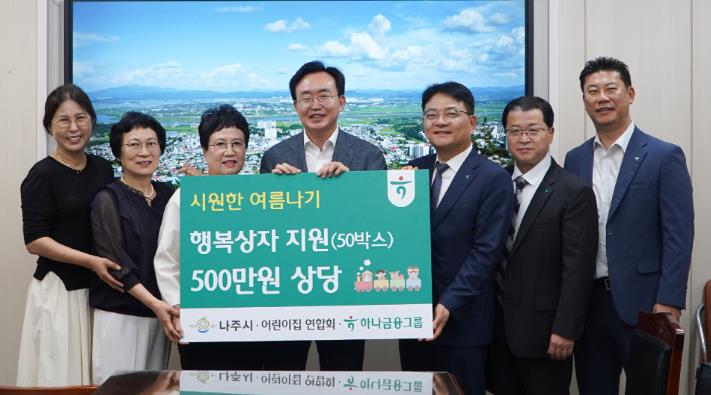 기탁식에는 윤병태 시장과 하나은행 양동원 부행장, 나주시어린이집연합회 김귀순 회장 등이 참석했다.