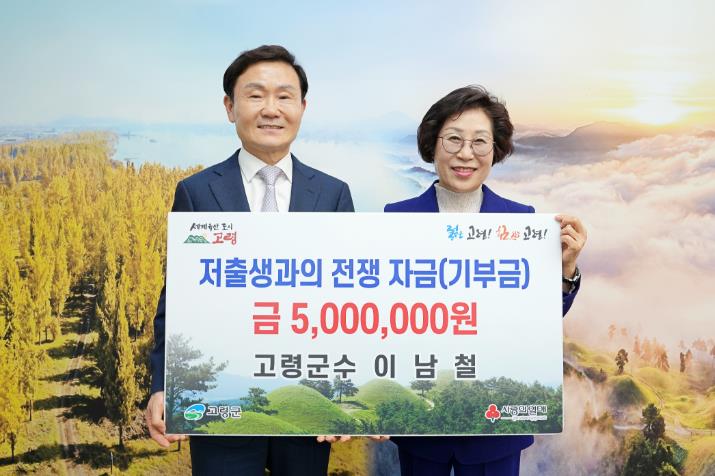 [뉴스서울] 이남철 고령군수는 16일 저출생 극복을 위한 성금 5백만원을 경북사회복지공동모금회에 기부하였다.
