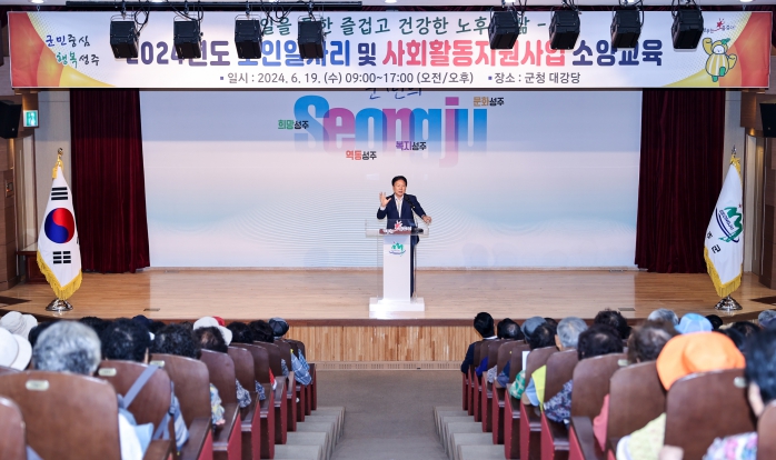 [뉴스서울] 성주군은 6월 19일 성주군 직영 노인일자리 참여자 421명을 대상으로'2024년 노인일자리 및 사회활동지원사업 소양교육(일을 통한즐겁고 건강한 노후의 삶)을 실시했다.