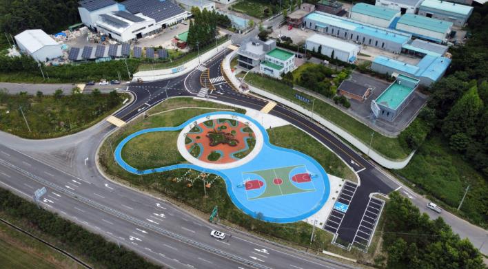 군은 지난 2022년 6월부터 진출입로 개선과 농공단지 내 수목이식 작업 등 0.8km 보행로를 정비하고, 쉼터 조성, 산책길 및 체육시설 조성 등 8,500㎡ 규모의 공원을 완성했다.