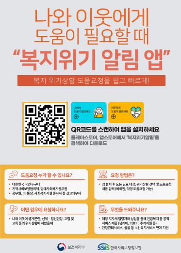 청도군에 따르면 복지위기 알림은 보건복지부가 지난 6월부터 전국적으로 시행한 사업으로 자신이나 이웃의 위기 상황을 휴대전화로 신속하게 신고할 수 있는 앱(Application)이다.