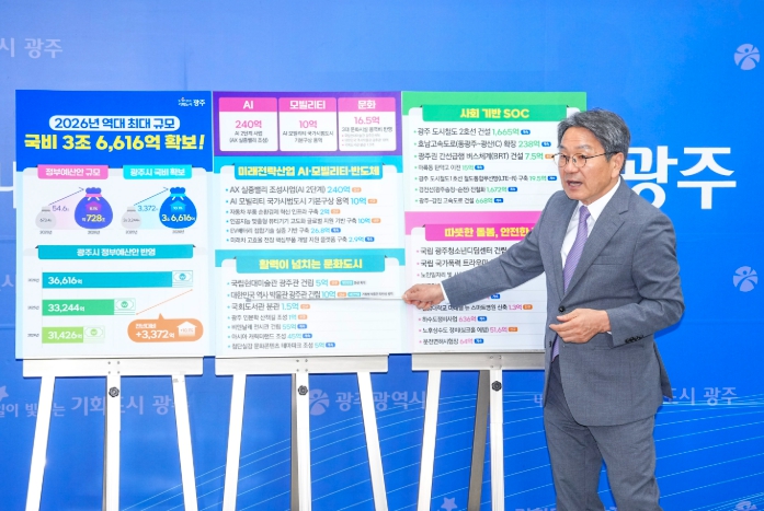 [뉴스서울] 광주광역시는 29일 국무회의에서 의결된 ‘2026년 정부예산안’의 지역사업 국비 반영이 역대 최대 규모인 3조6616억원이라고 밝혔다.
