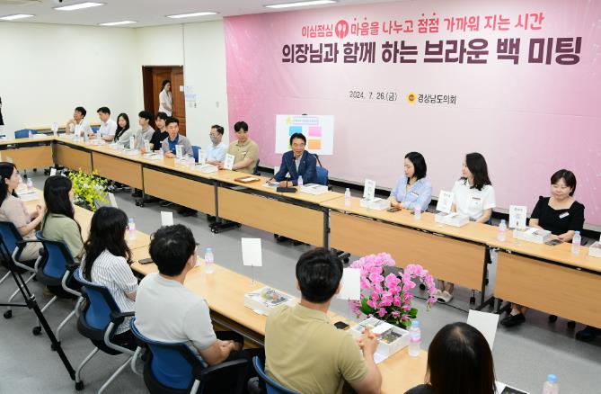 [뉴스서울] 경상남도의회 최학범(국민의힘, 김해1) 의장은 26일 도의회 1층 대회의실에서 7급 이하 직원 39명이 참석하여 자유롭게 소통하는 브라운 백 미팅을 개최했다.