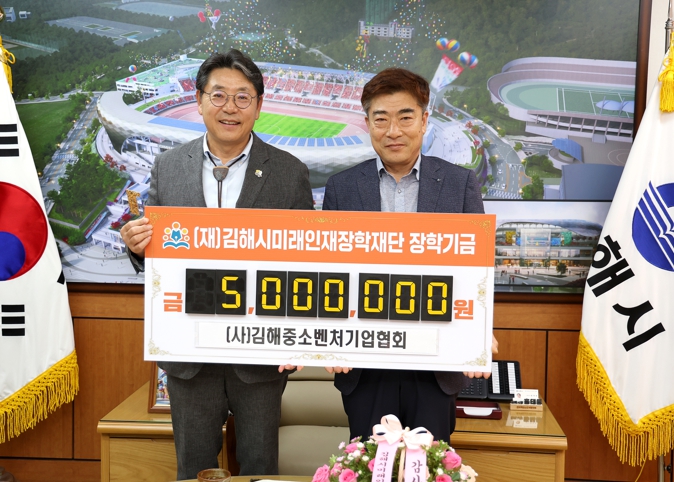 [뉴스서울] 김해시미래인재장학재단(이사장 현종원)은 8일 김해중소·벤처기업협회(회장 류해용)에서 장학기금 500만원을 기탁했다고 밝혔다.