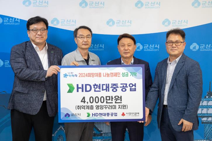 [뉴스서울] HD현대중공업이 11일 무더위에 지친 사회복지시설이용자를 위해 4,000만원 상당의 여름나기 영양꾸러미를 군산시에 전달했다.