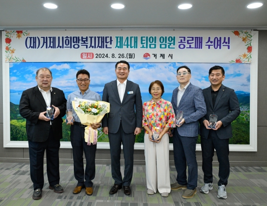 [뉴스서울] 거제시는 지난 26일 거제시희망복지재단 제4대 퇴임 임원 김원배 이사장과 이사 6명에 대한 공로패 수여식을 개최했다.