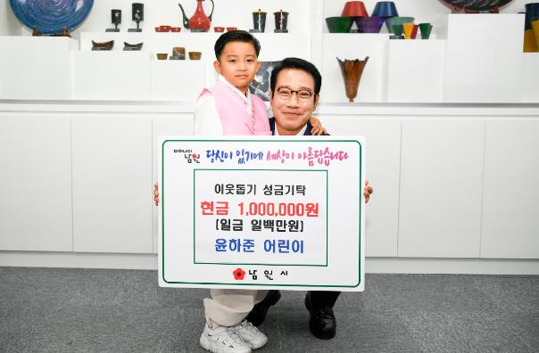 [뉴스서울] 남원시는 3일 도통초 윤하준 어린이와 부모님이 남원시청을 찾아와 이웃돕기 성금 1백만원을 기부했다고 밝혔다.