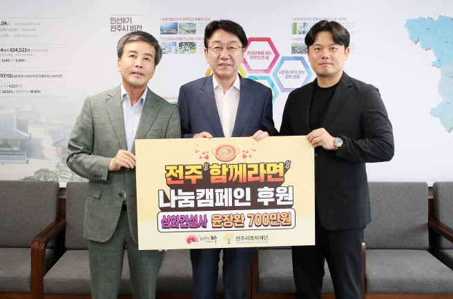 ▲ 전주형 맛있는 복지 삼화건설사, ‘전주함께라면’ 성금 700만 원 기부 |