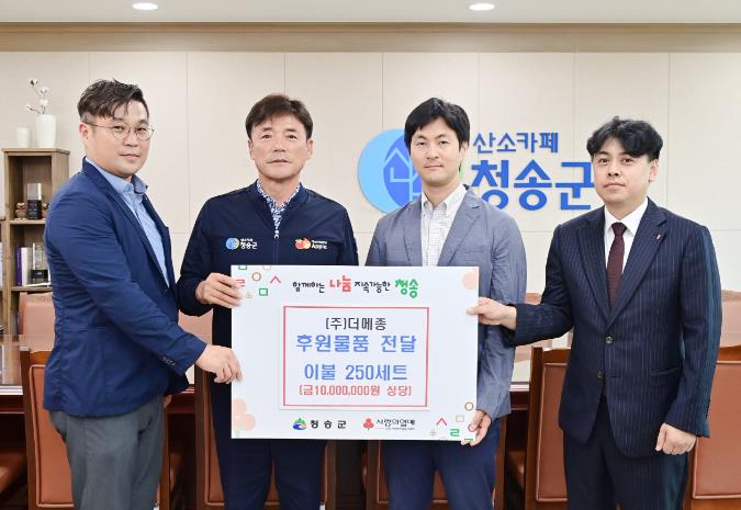 [뉴스서울] 청송군은 (주)더메종이 7월 11일 청송군 주민들을 위해서 이불 250세트(1,000만 원 상당)를 전달했다고 밝혔다.